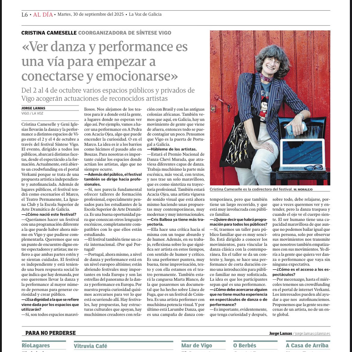 DIRECTORA ARTÍSTICA E PRODUTORA DO FESTIVAL POR DANZA DE VIGO DIRECCIÓN ARTÍSTICA DE FESTIVAL DE DANZA NA RÚA / VIGO